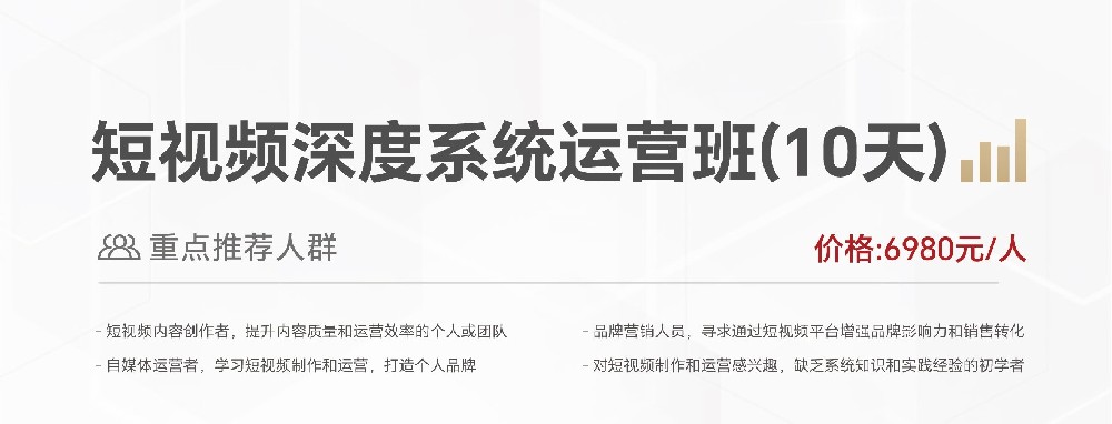 四大课程:短视频、直播运营、小红书营销、AI应用