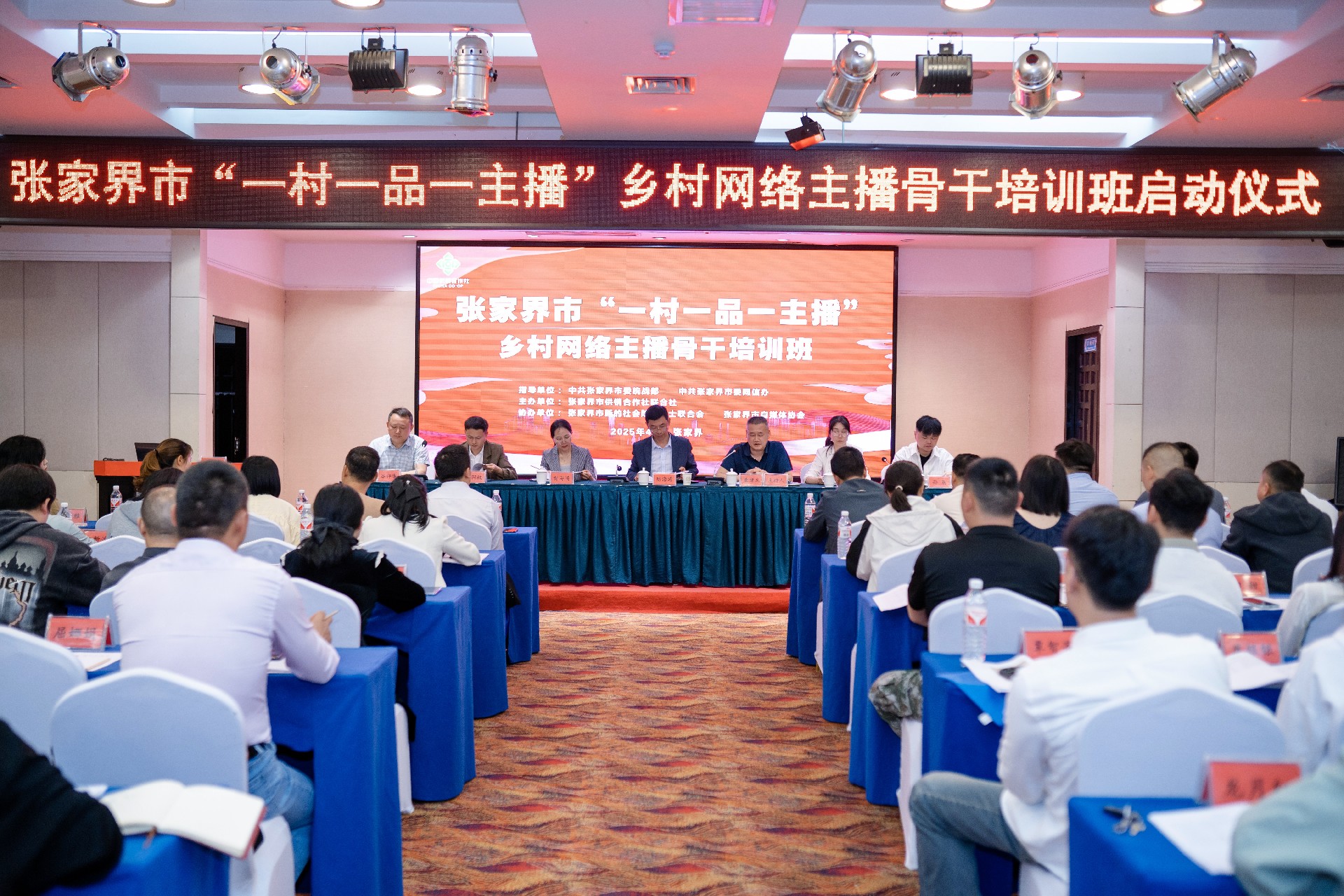 2025年4月23日上午,张家界市“一村一品一主播”乡村网络主播骨干培训班在蓝天大酒店正式启动。